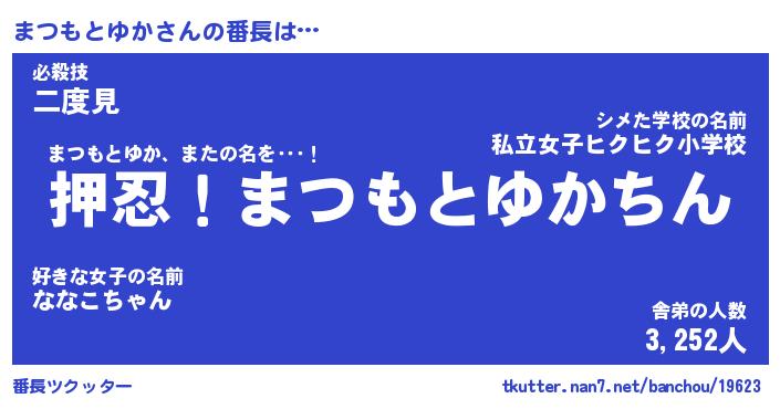 | 伝説のあだ名 | 『封印されしスナイパーまつもとゆか』 |