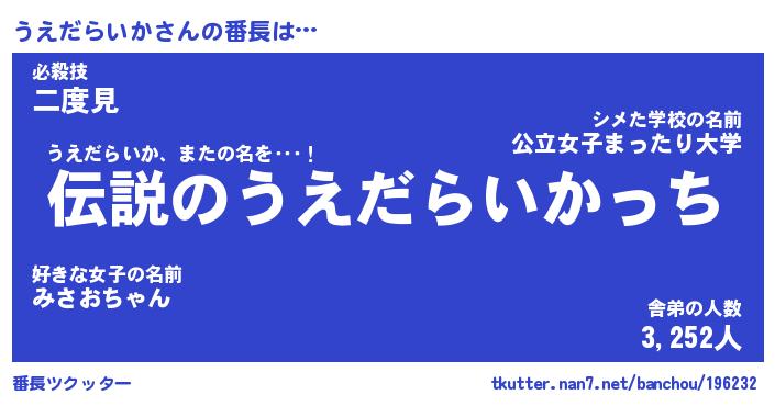 | 肩書あだ名 | 『うえだらいか社長』『うえだらいか塾長』 |