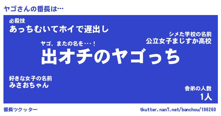 | ファンタジー風あだ名 | 『ヤゴフェル』『エターナルヤゴー』 |
