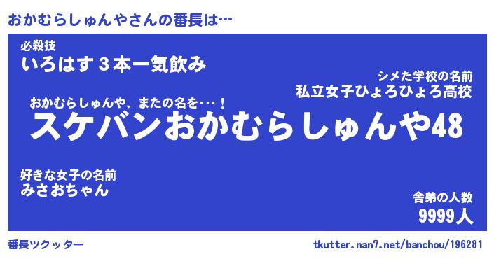| 肩書あだ名 | 『おかむらしゅんや御曹司』 |