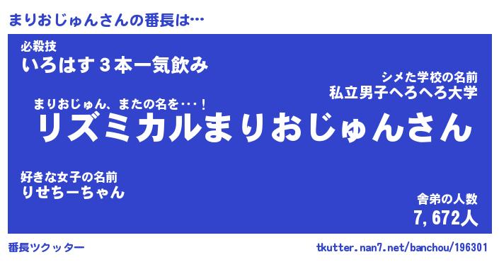 | ピコ太郎風あだ名 | 『マコ次郎』『ピマ三郎』『マリ三郎』 |