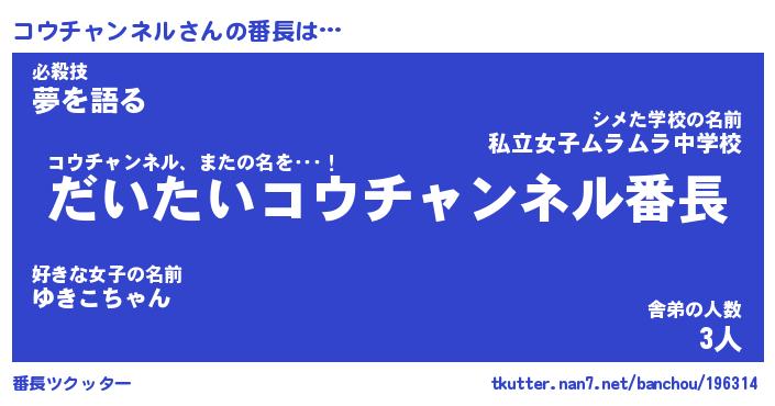| 男性向けラノベタイトル風あだ名 | 『コウチャンネルの憂鬱』 |
