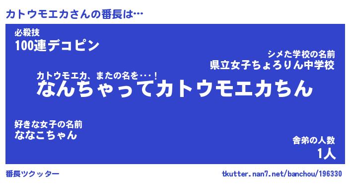 | ポケモン風あだ名 | 『カトチュウ』『カトウダネ』 |
