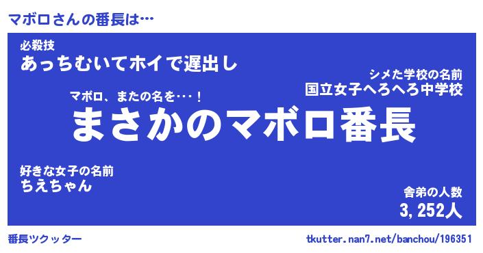 | ヒーロー風カッコイイあだ名 | 『スーパーマボロ』『ウルトラマボロマン』 |