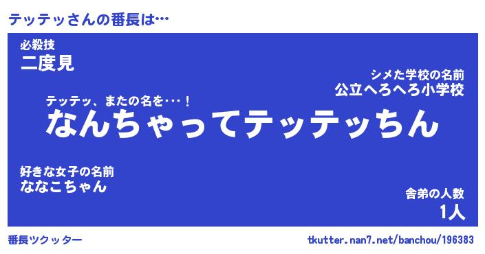 | ポケモン風あだ名 | 『テッチュウ』『テッテダネ』 |