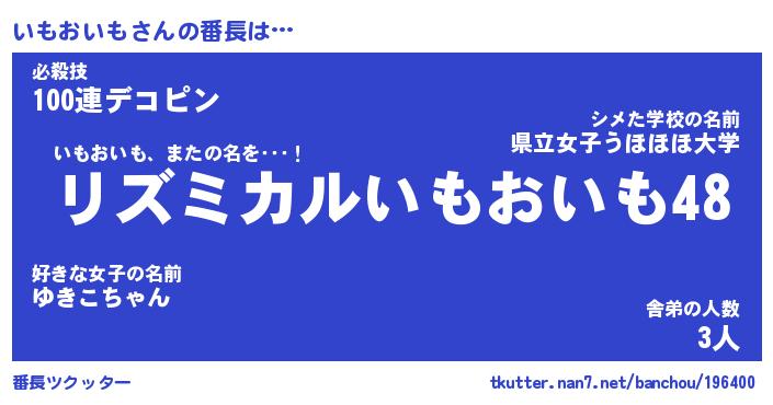 | ファンタジー風あだ名 | 『イモフェル』『エターナルイモオイモー』 |