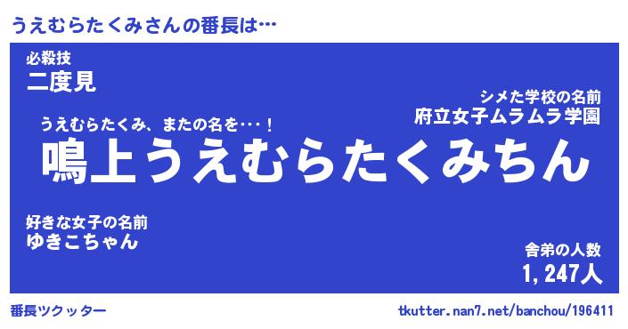 | 肩書あだ名 | 『うえむらたくみ店長』 |