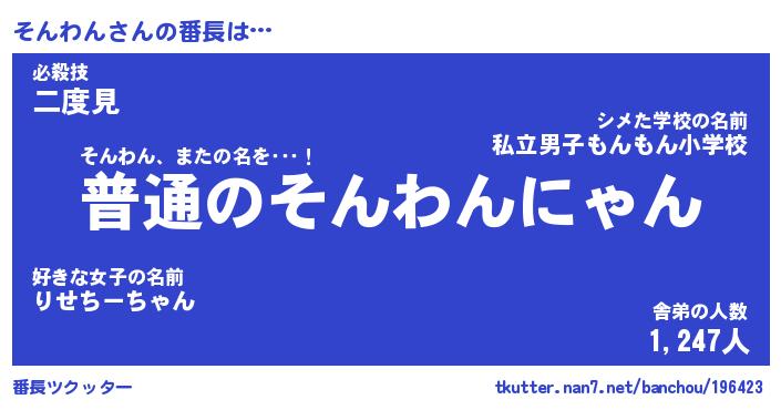 | 2回繰り返すあだ名 | 『そんそん』『そそんん』『ぬれぬれ』 |