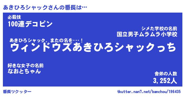 | ピコ太郎風あだ名 | 『アコ史郎』『ピア二郎』『アキ五郎』 |