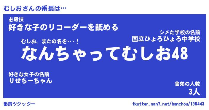 | 意味不明あだ名 | 『ペロリンむしお』『むしおフォーエバー』 |