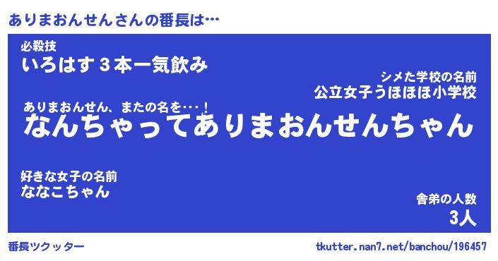 | ヘコむあだ名 | 『ありにー』『なまこ酢』『あり太郎』 |