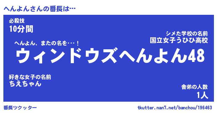 | ヒーロー風カッコイイあだ名 | 『スーパーヘンヨン』『魔戒騎士ヘン』 |
