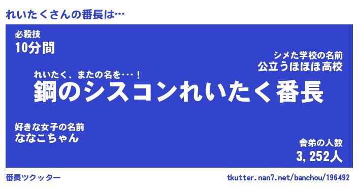 | 意味不明あだ名 | 『ペロリンれいたく』『永久保存れいたく』 |