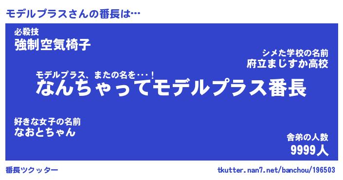 | ヒーロー風カッコイイあだ名 | 『スーパーモデルプラス』『暗黒騎士モデ』 |