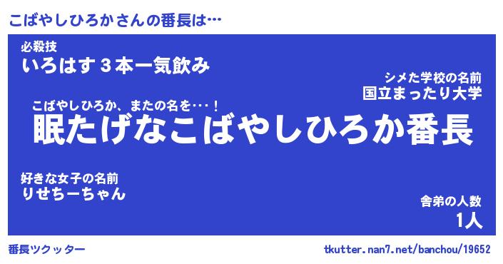 | 2回繰り返すあだ名 | 『こばこば』『ここばば』『いそいそ』 |