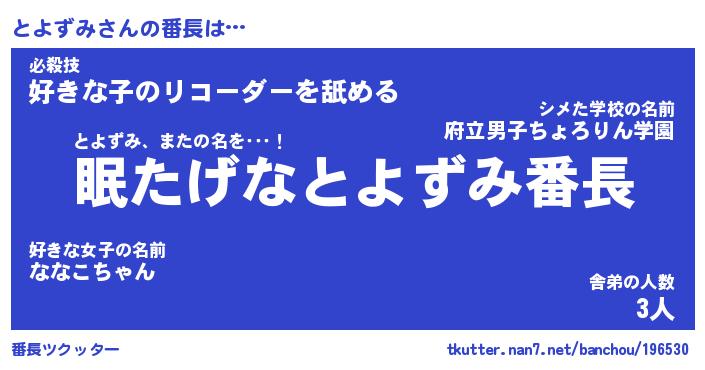 | ファンタジー風あだ名 | 『トヨフェル』『エターナルトヨズミー』 |