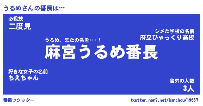 | 2回繰り返すあだ名 | 『うるうる』『ううるる』『ぬるぬる』 |