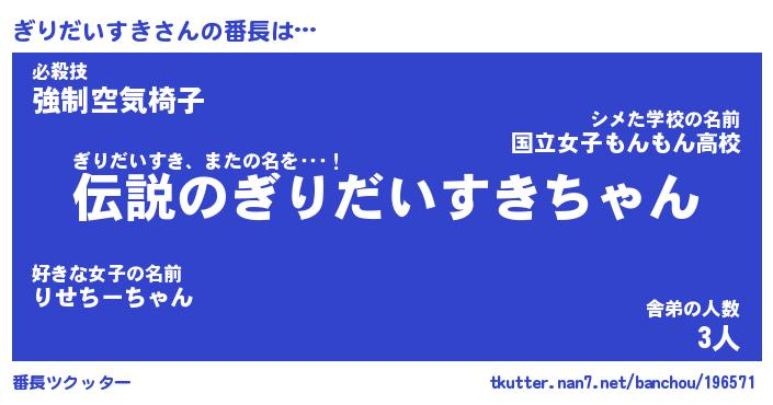 | ヘコむあだ名 | 『ぎりもー』『牛乳』『ぎりっ子』 |