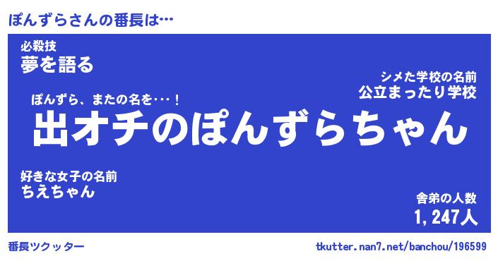 | 意味不明あだ名 | 『ペロリンぽんずら』『永久保存ぽんずら』 |