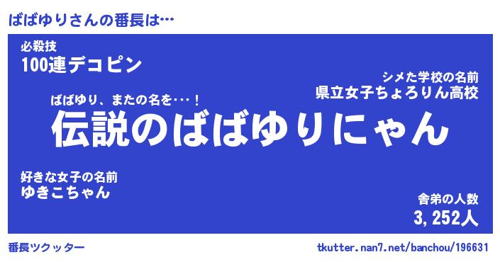 | ファンタジー風あだ名 | 『ババフェル』『エターナルババユリー』 |