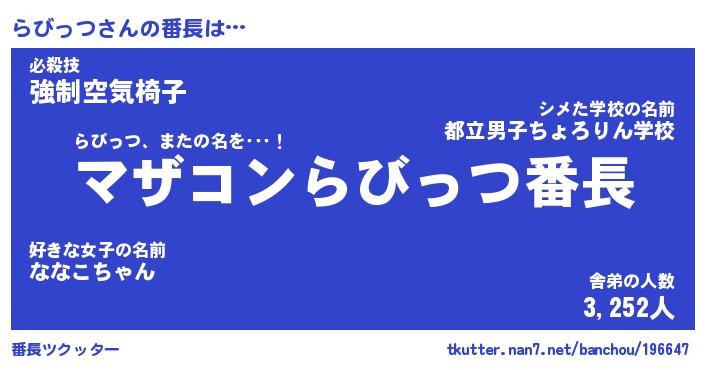 | 肩書あだ名 | 『らびっつ社長』『らびっつ大統領』 |