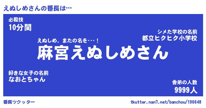 | 意味不明あだ名 | 『ペロリンえぬしめ』『永久保存えぬしめ』 |