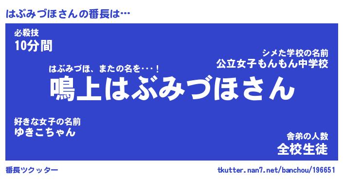 | ヘコむあだ名 | 『はぶもー』『牛乳』『はぶを』 |