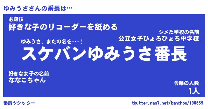 | 意味不明あだ名 | 『ペロリンゆみうさ』『永久保存ゆみうさ』 |