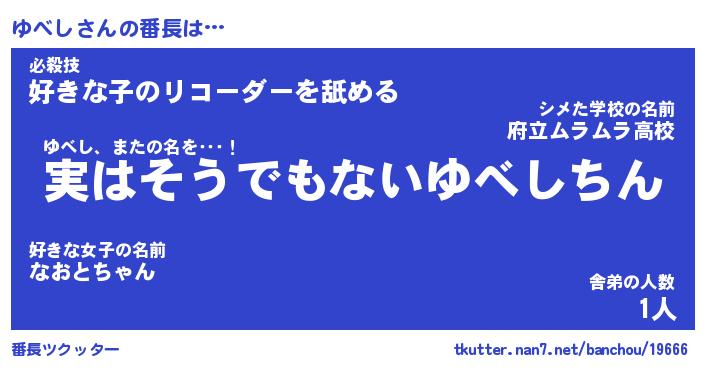 | ヘコむあだ名 | 『ゆべにゅー』『豆乳』『ゆべっぺ』 |