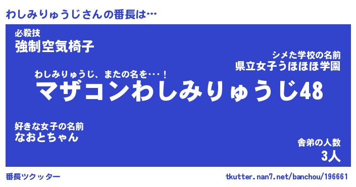 | ヒーロー風カッコイイあだ名 | 『スーパーワシミリュウジ』 |