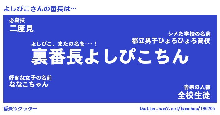 | 意味不明あだ名 | 『ペロリンよしぴこ』『永久保存よしぴこ』 |