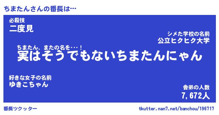 | 肩書あだ名 | 『ちまたん御曹司』『ちまたん国家主席』 |