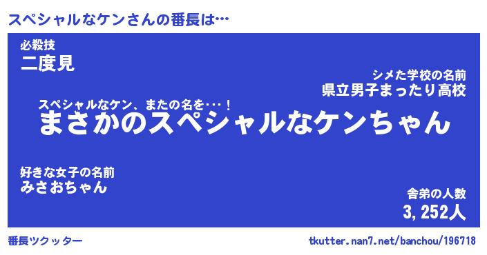 | 伝説のあだ名 | 『伝説のスナイパースペシャルなケン』 |