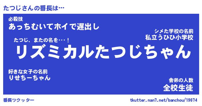 | 意味不明あだ名 | 『ペロリンたつじ』『たつじフォーエバー』 |