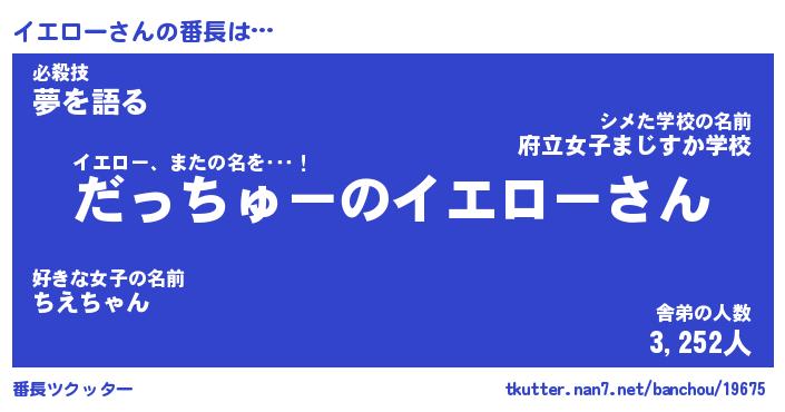 | ファンタジー風あだ名 | 『イエフェル』『エターナルイエローー』 |