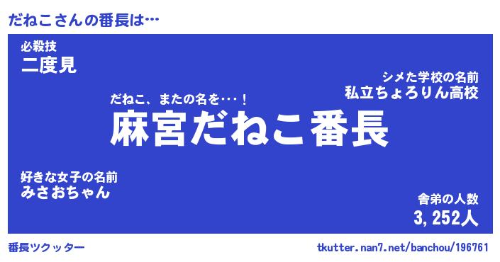 | 2回繰り返すあだ名 | 『だねだね』『だだねね』『ぬめぬめ』 |