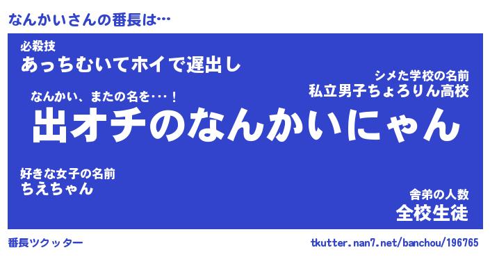 | ヒーロー風カッコイイあだ名 | 『スーパーナンカイ』『暗黒騎士ナン』 |
