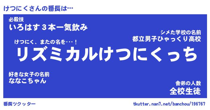 | 意味不明あだ名 | 『ペロリンけつにく』『永久保存けつにく』 |