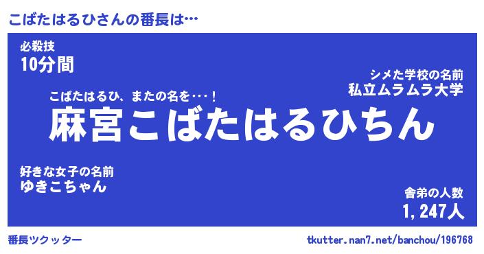 | 男性向けラノベタイトル風あだ名 | 『コバタハルヒアートオンライン』 |