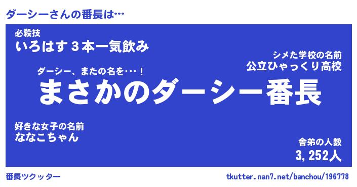| ヘコむあだ名 | 『ダーにー』『なまこ酢』『ダー太郎』 |