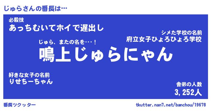 | 意味不明あだ名 | 『ペロリンじゅら』『じゅらフォーエバー』 |