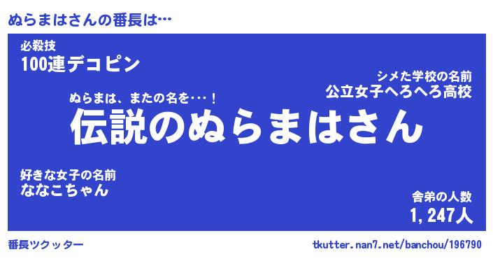 | 肩書あだ名 | 『ぬらまは社長』『ぬらまは大統領』 |