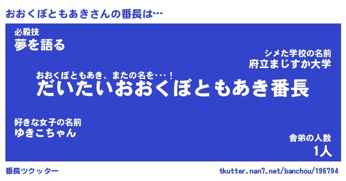 | 伝説のあだ名 | 『不死鳥のスナイパーおおくぼともあき』 |