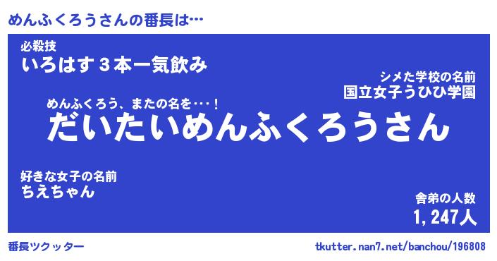 | 恥ずかしいあだ名 | 『プリティーめんふくろう』『めんっちょ』 |