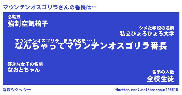 | ヒーロー風カッコイイあだ名 | 『スーパーマウンテンオスゴリラ』 |