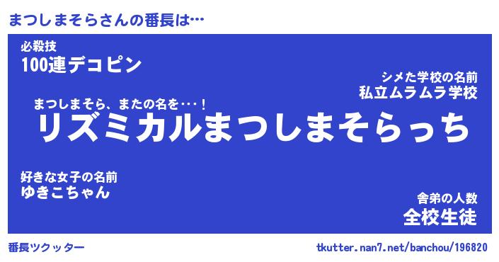 | 肩書あだ名 | 『まつしまそら店長』『まつしまそら班長』 |