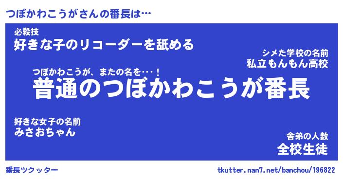 | 肩書あだ名 | 『つぼかわこうが御曹司』 |