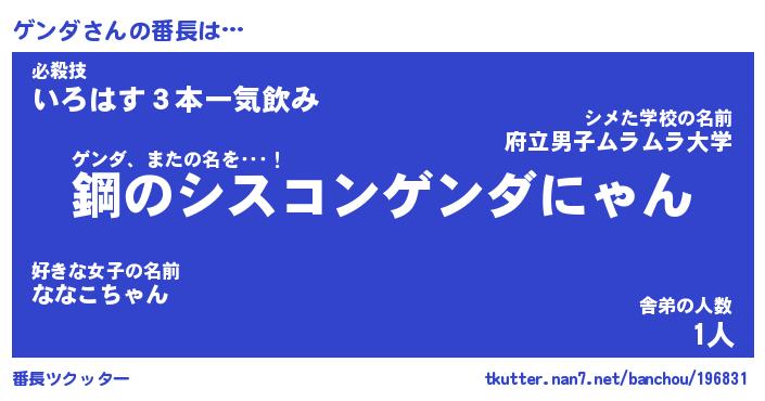 | 肩書あだ名 | 『ゲンダ店長』『ゲンダ大統領』 |