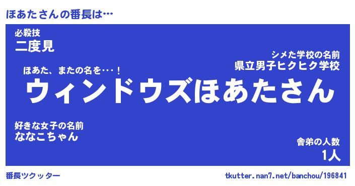 | ヒーロー風カッコイイあだ名 | 『スーパーホアタ』『ウルトラほあたマン』 |