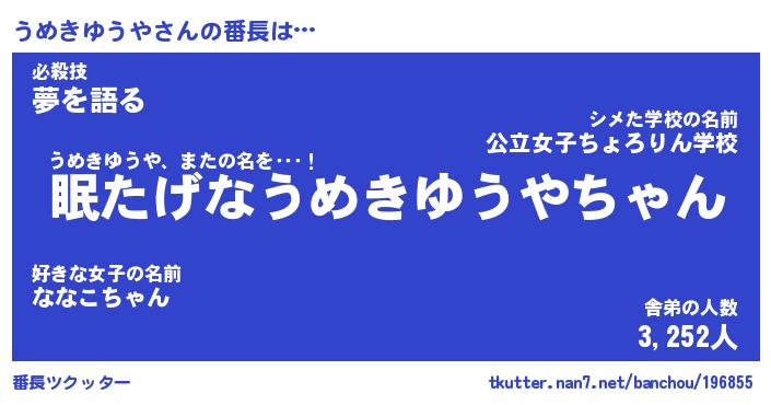 | 肩書あだ名 | 『うめきゆうや店長』『うめきゆうや班長』 |